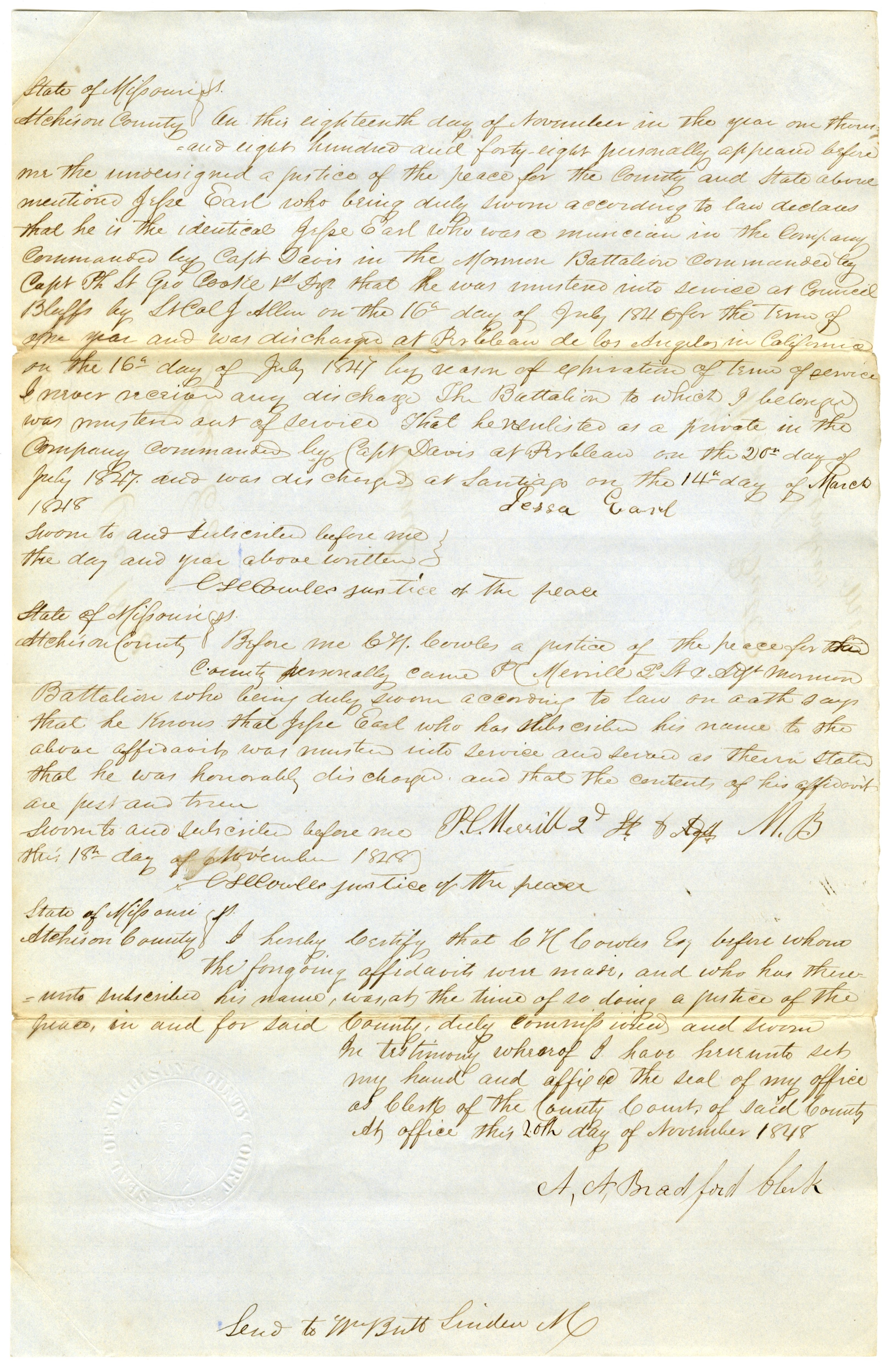 County personnally came P C Merrill 2d Lt & Agt Mormon