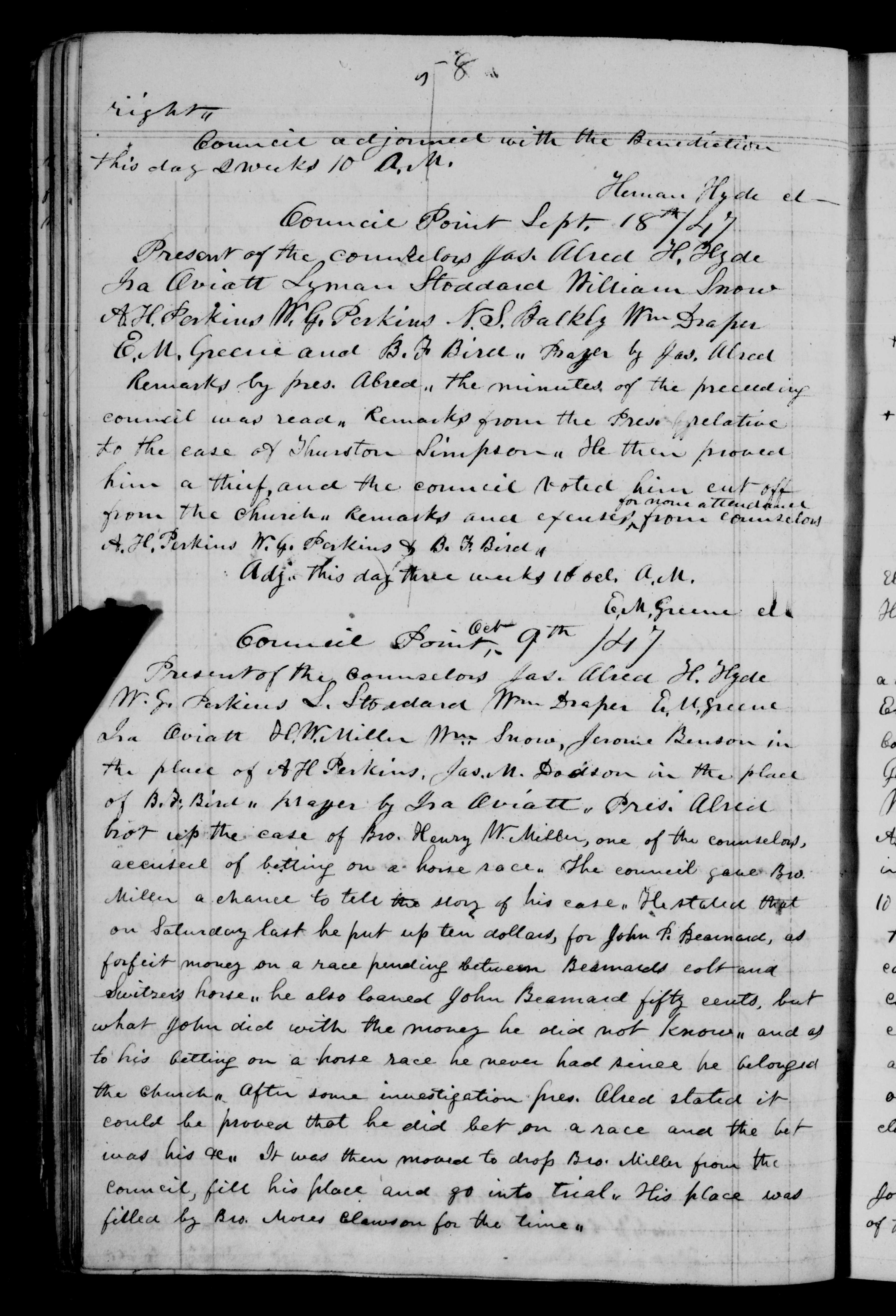 Present of the counselors Jas. Alred H. Hyde