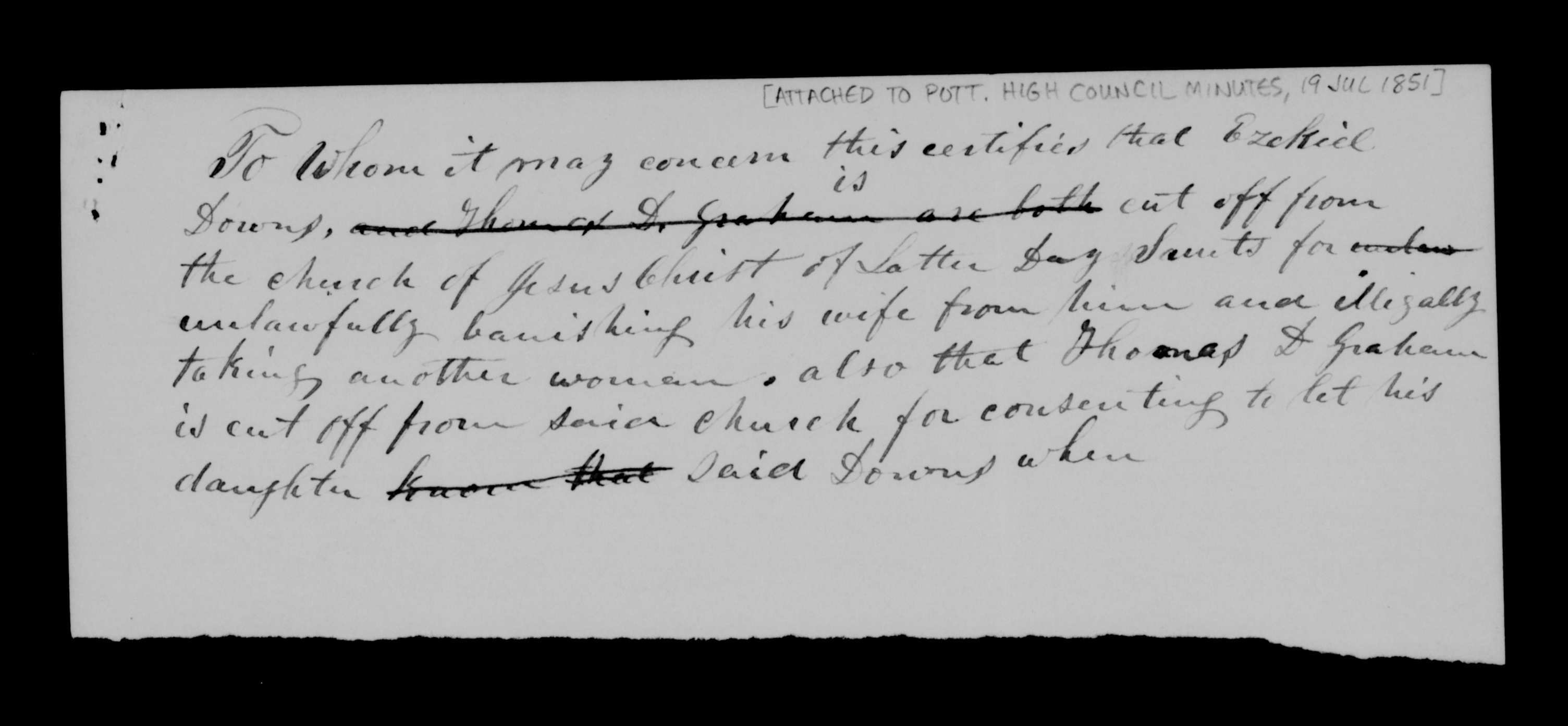 [ attached to Pott. High Council minutes, 19 JUL 1851]