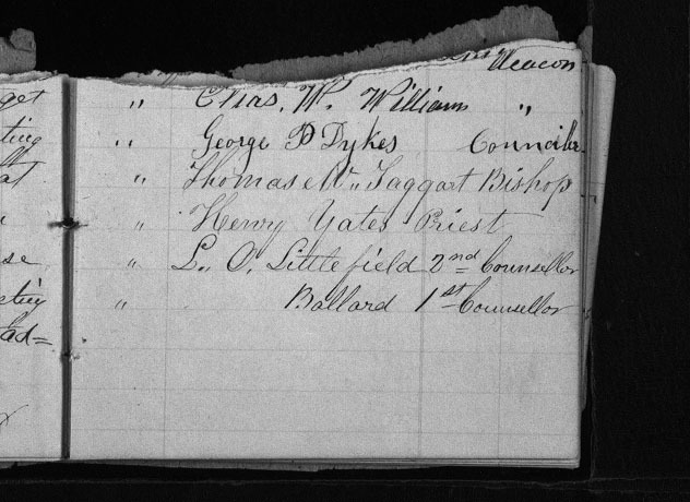 | " | L. O. Littlefield 2nd Counsellor |