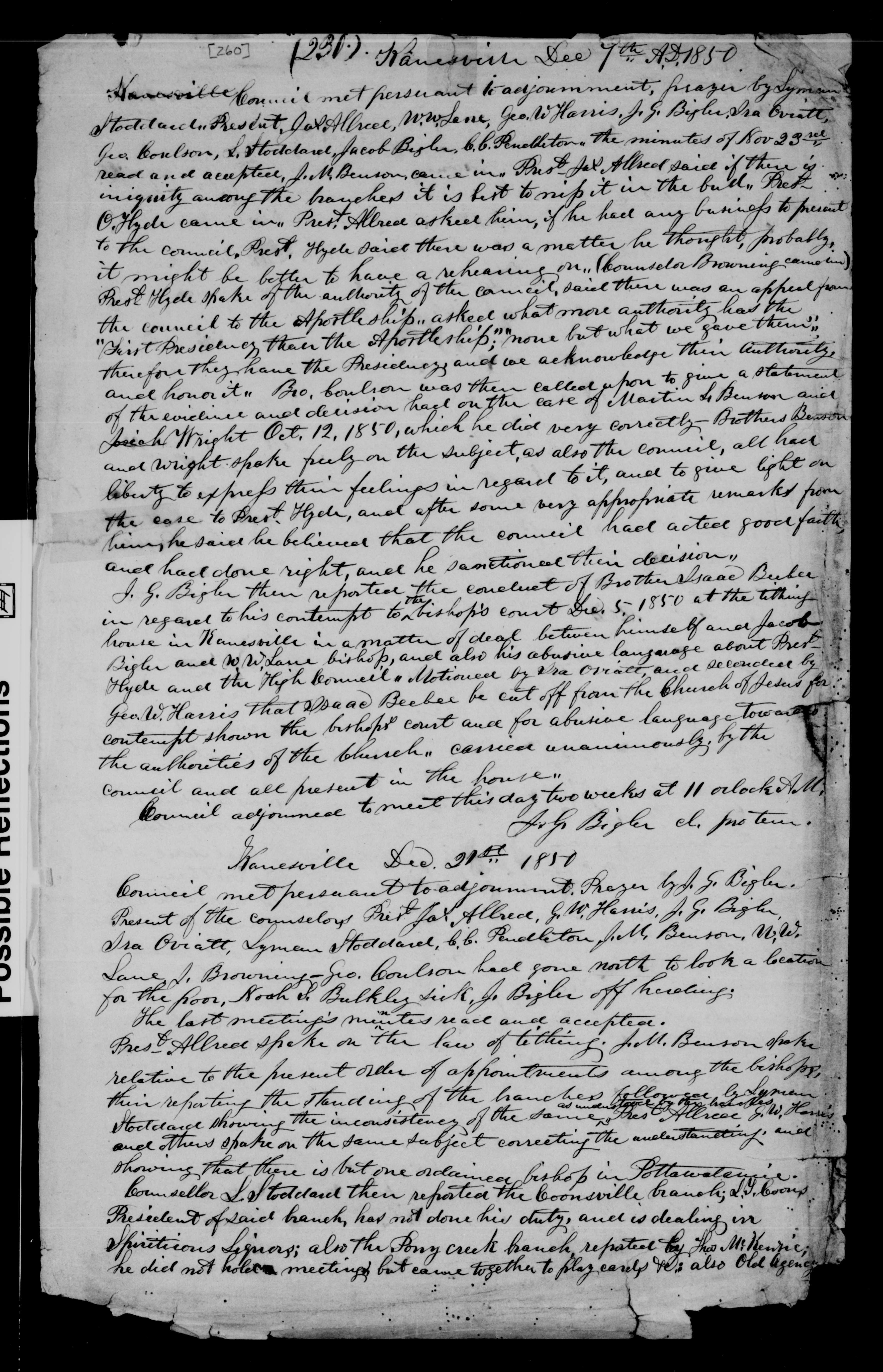 [260] (230) Kanesville Dec 7th AD 1850Kanesville Council met persuant to adjournment, prayer by Lyman