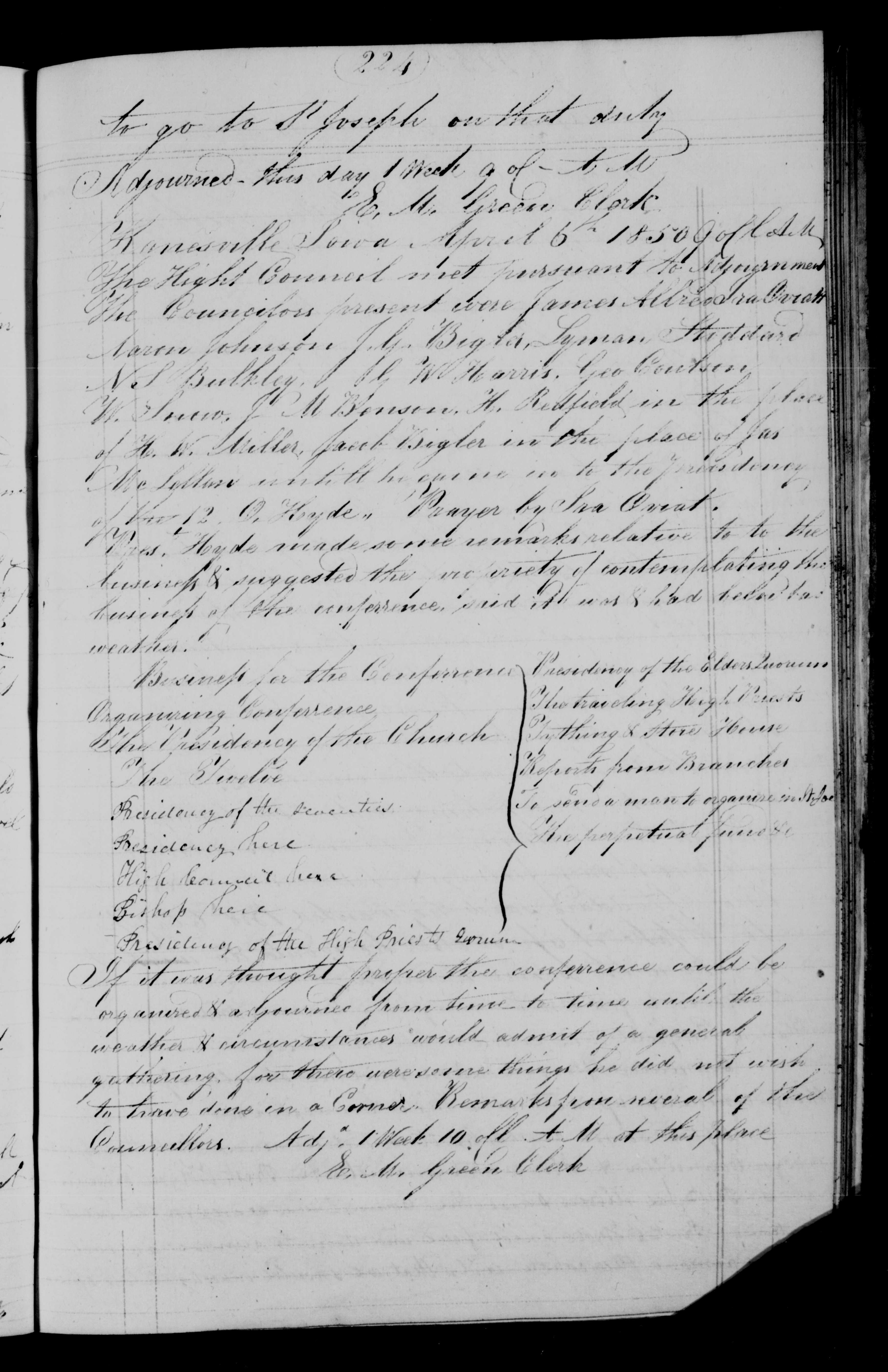 Presidency here } To send a man to organize High Council here in St Joe
