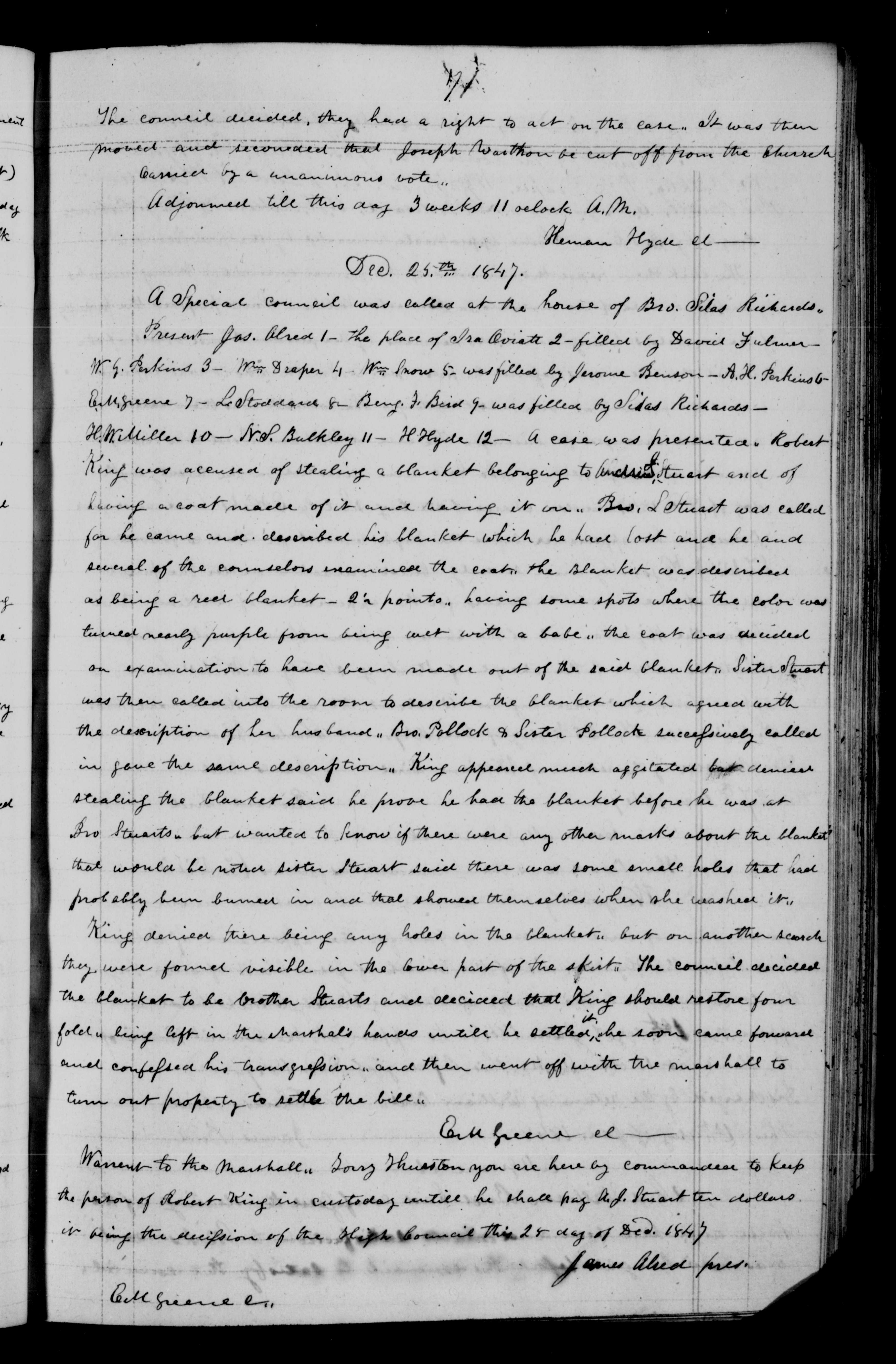 it being the decission of the High Council this 28 day of Dec. 28.1847