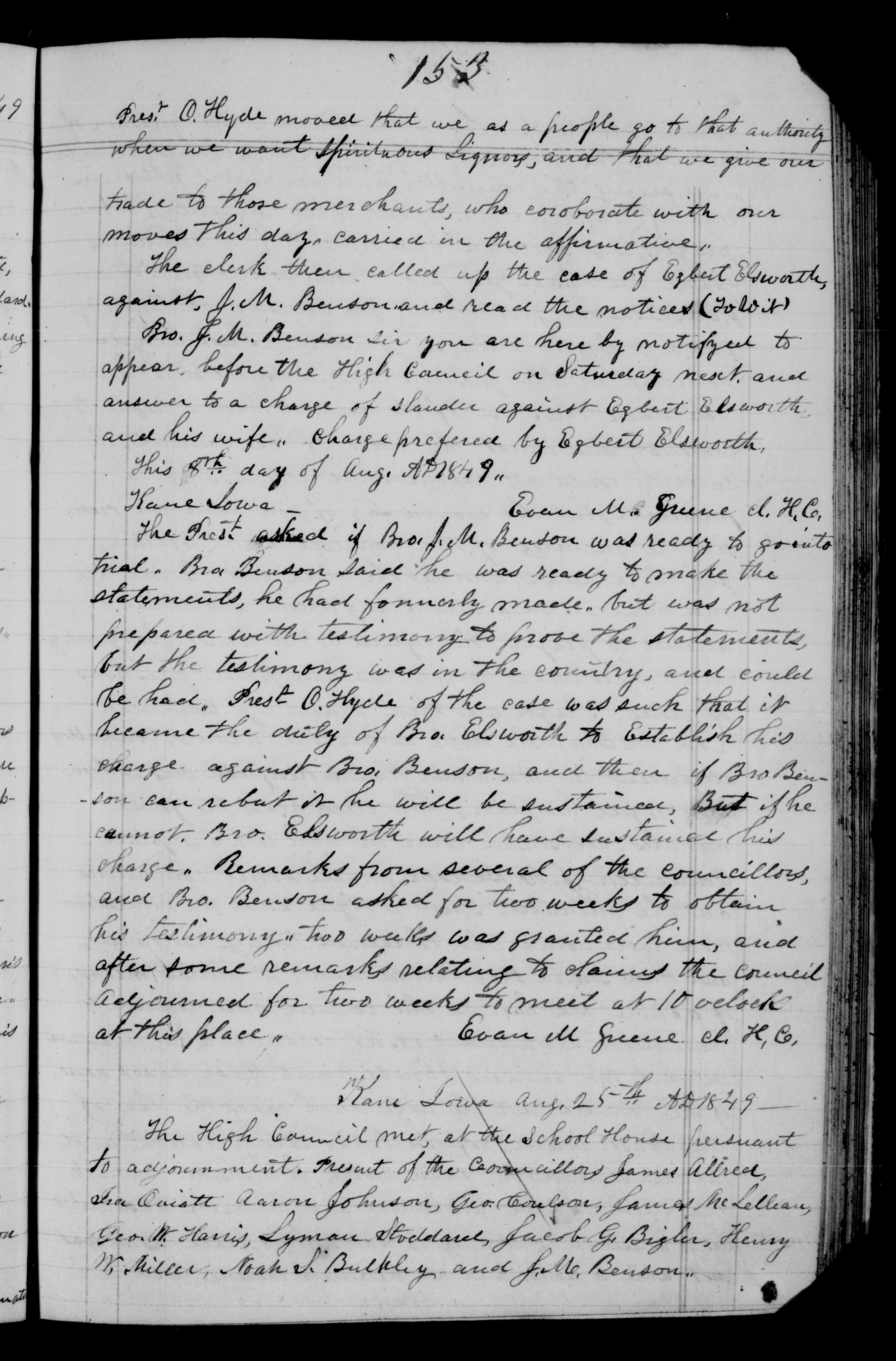and Bro. Benson asked for two weeks to obtain