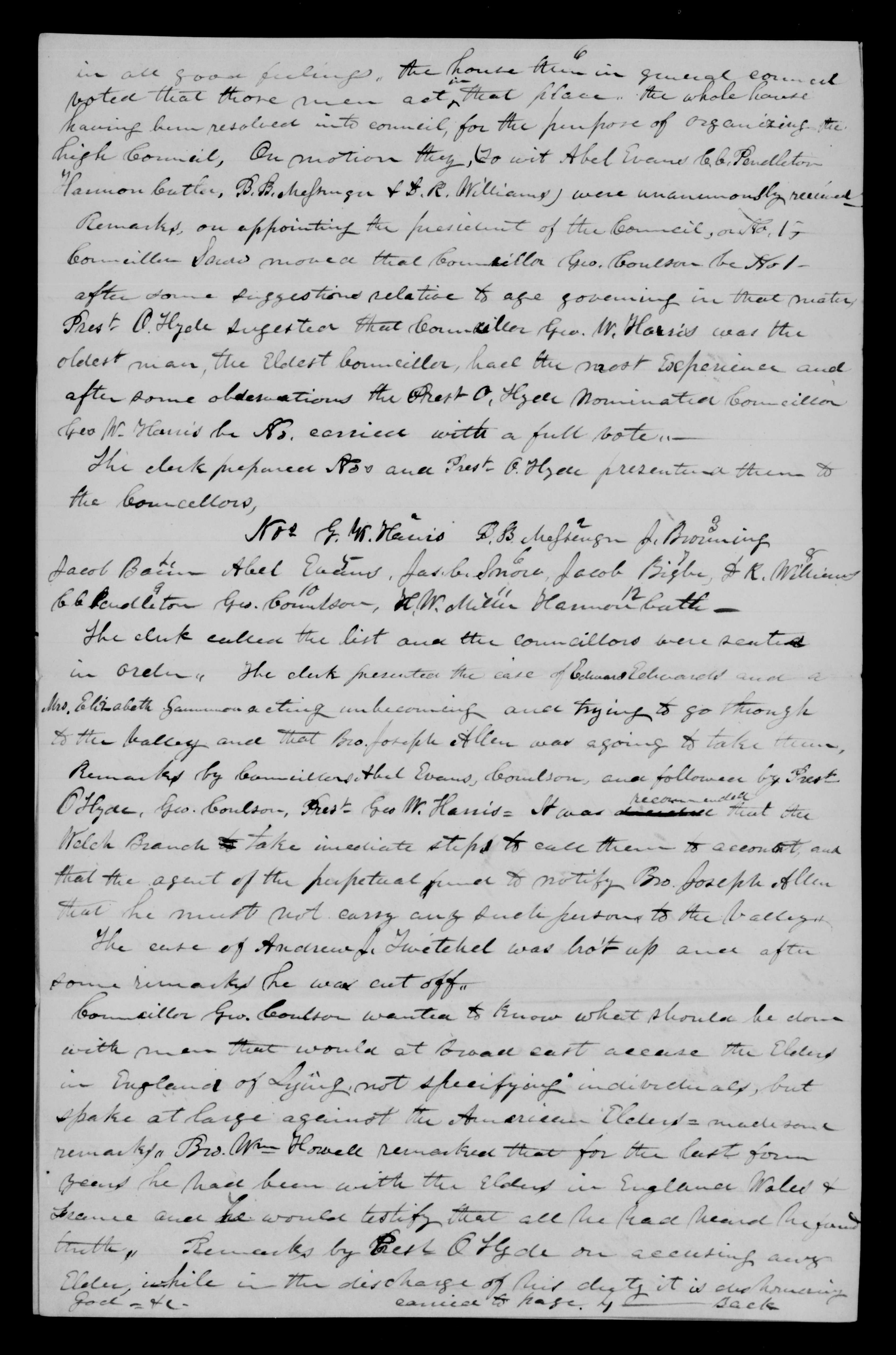 O Hyde, Geo. Coulson, Prest. Geo W. Harris= It was decied recommended that the