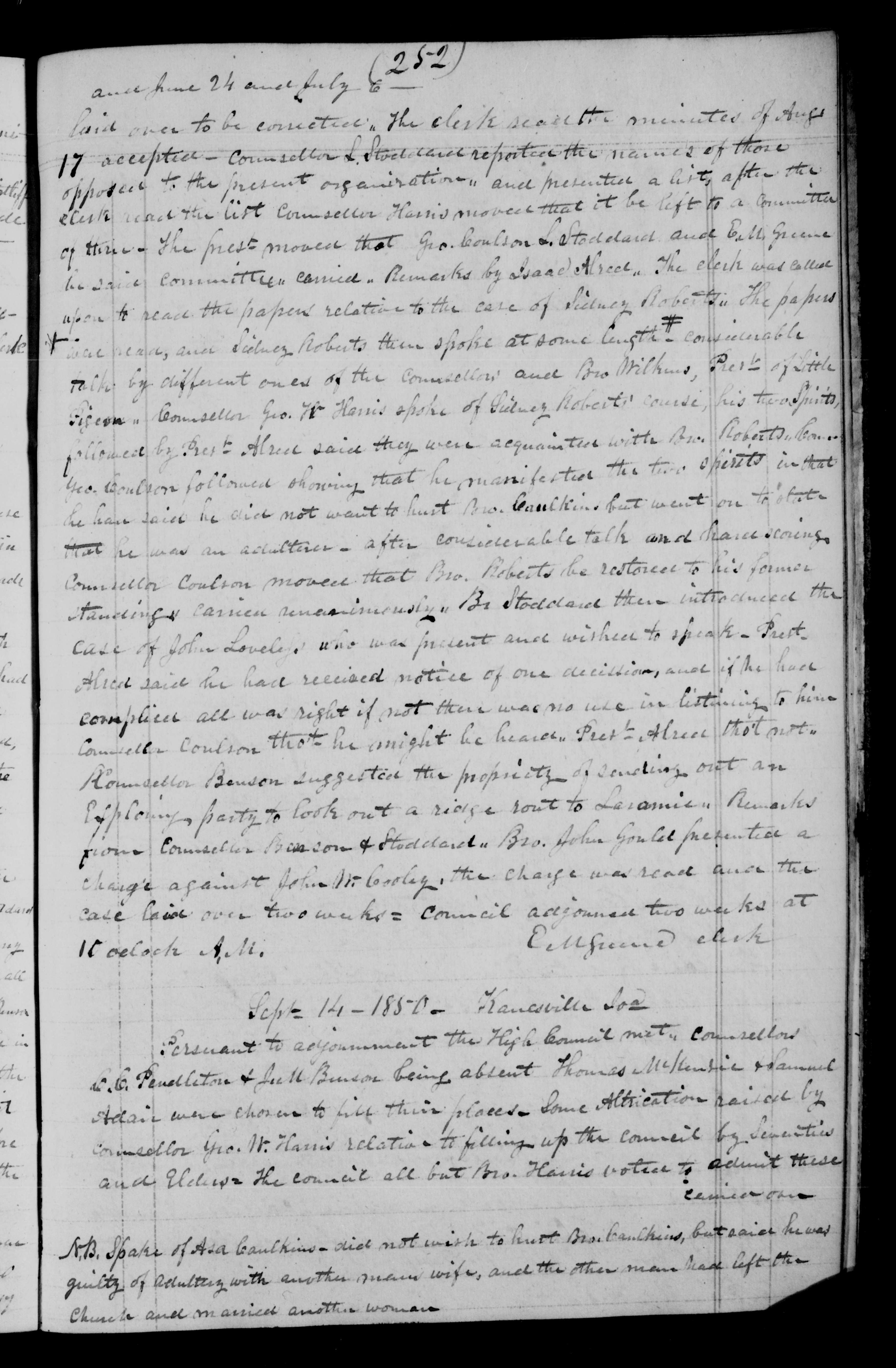 and Elders= The Council all but Bro. Harris voted to admit these