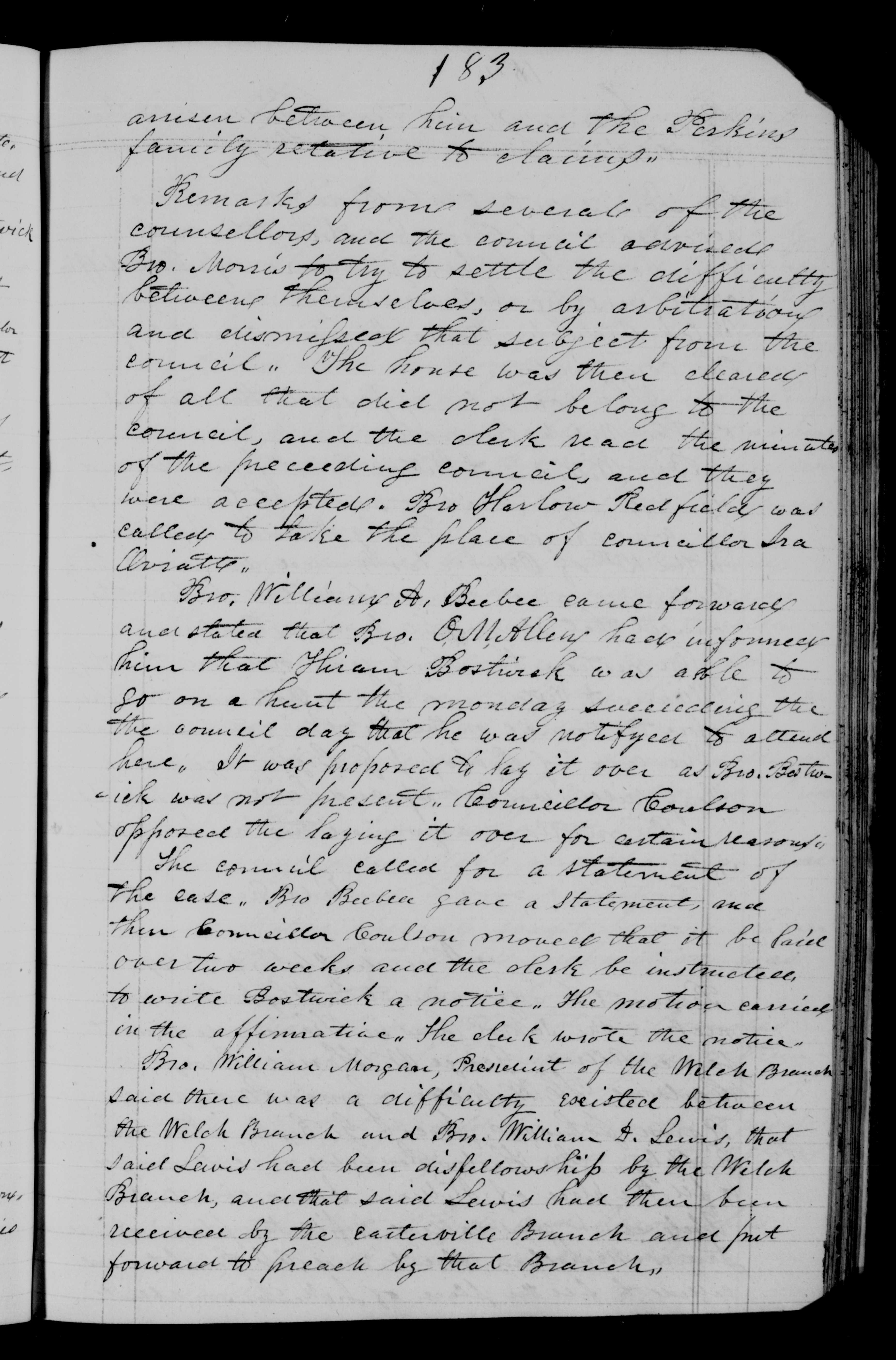 the Welch Branch and Bro. William D. Lewis, that