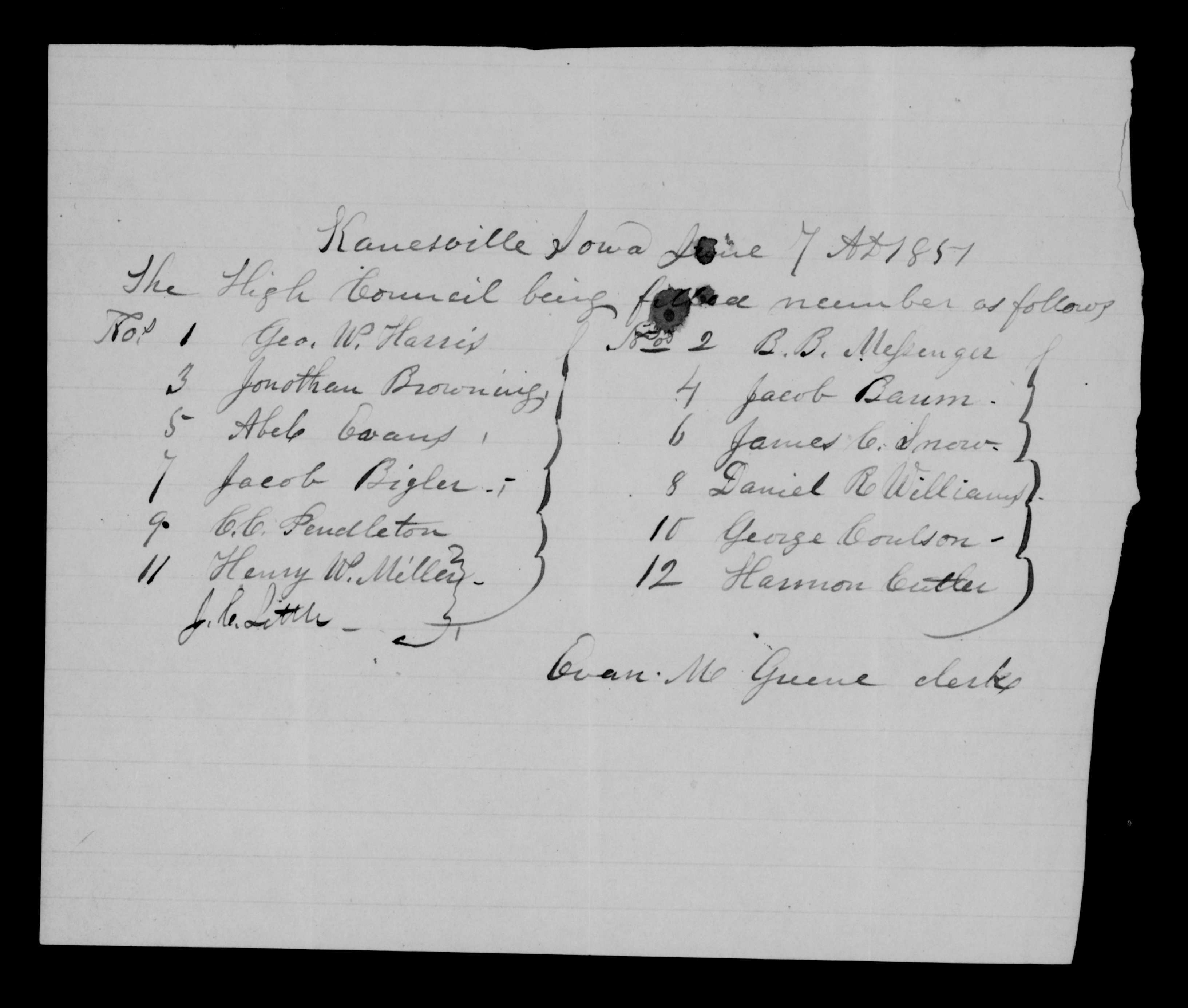 Kanesville Iowa June 7 A D 1851