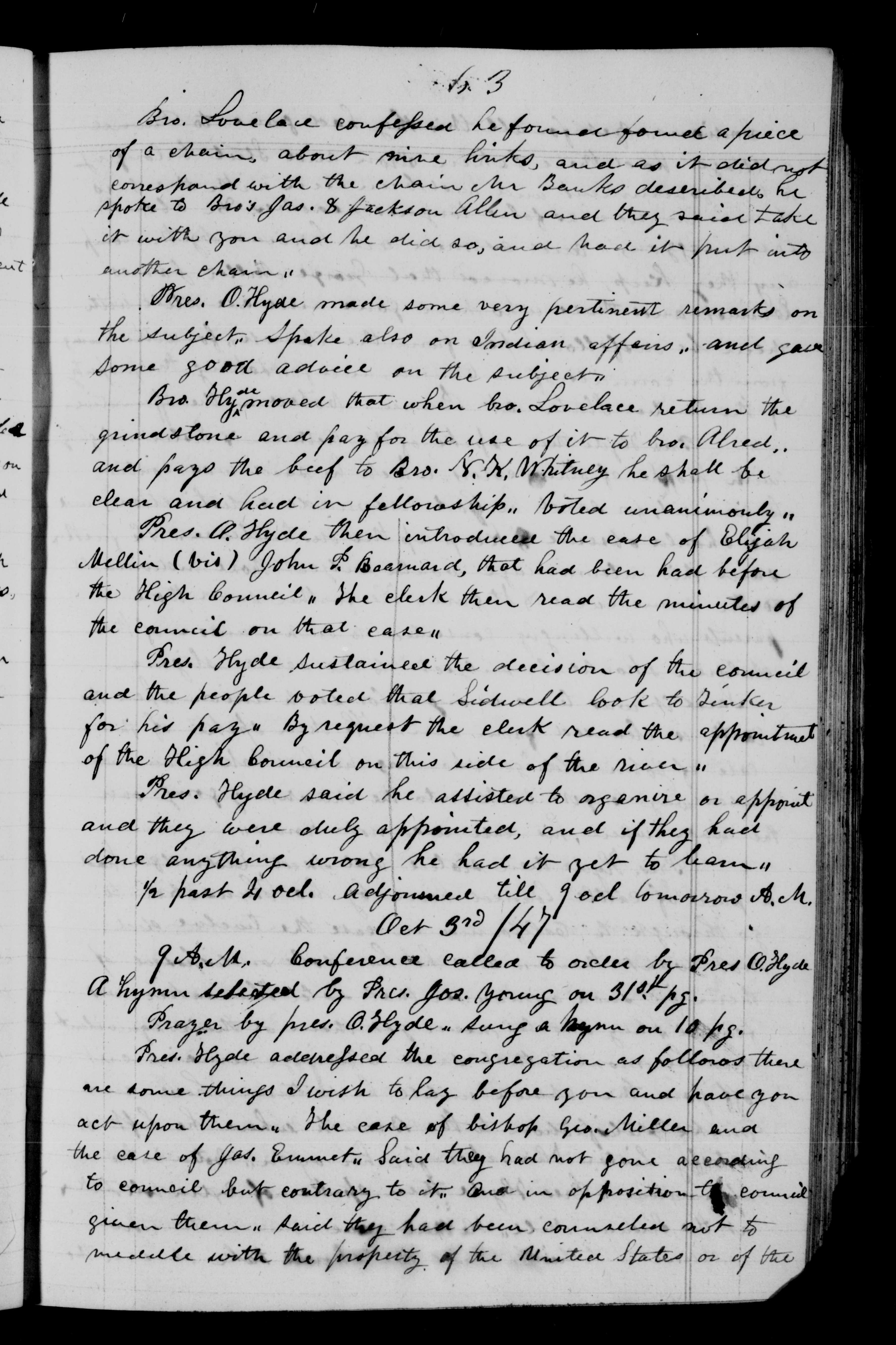 Prayer by pres. O Hyde,, sung a hymn o 10 pg.