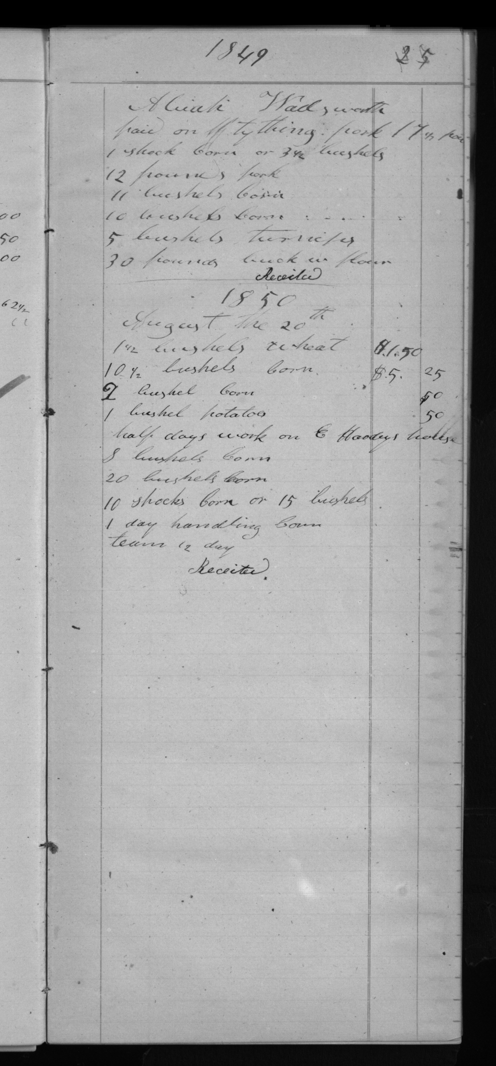 1 1/2 bushels wheat $1.50