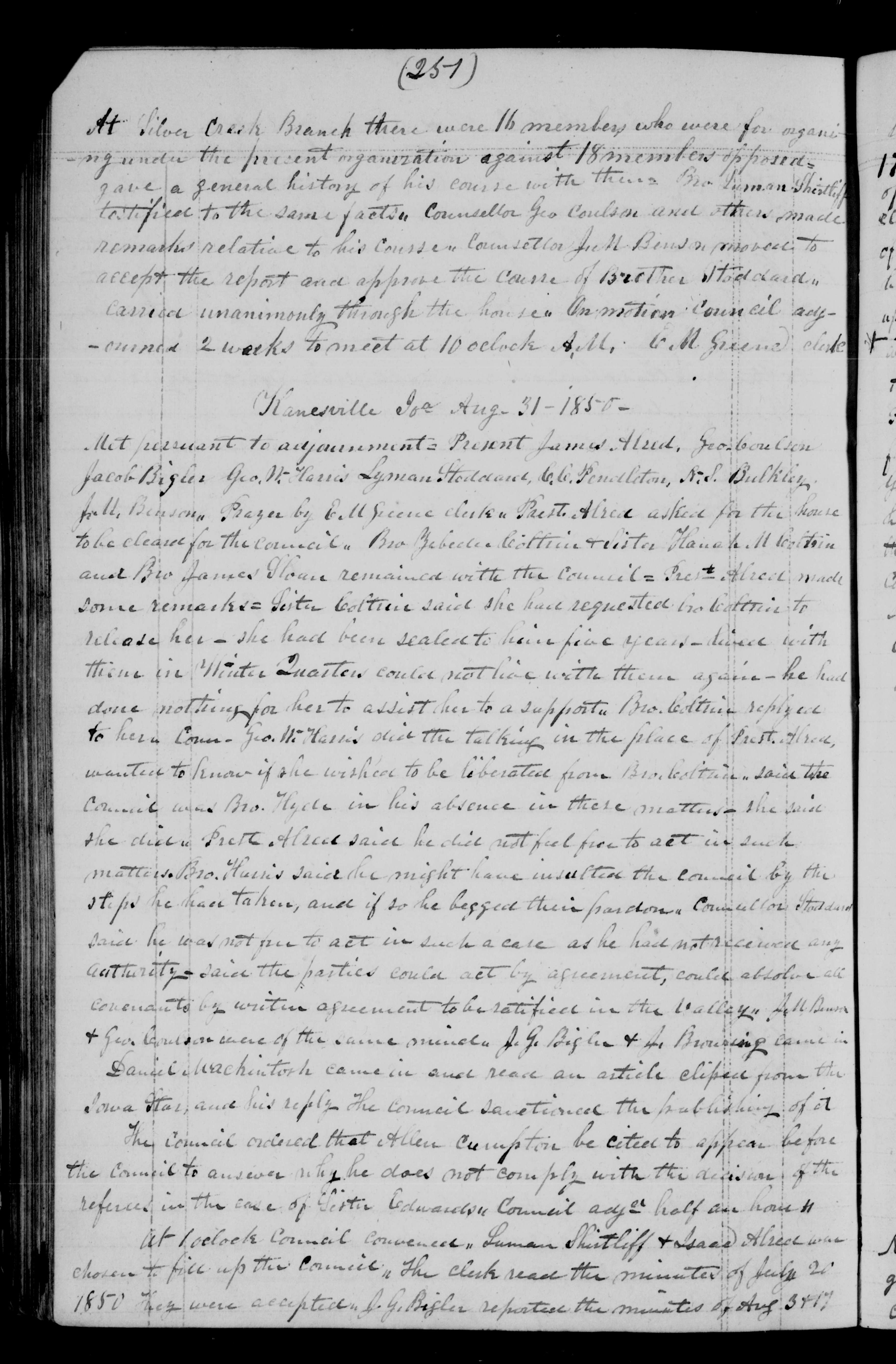 Kanesville Ioa Aug 31 1850-