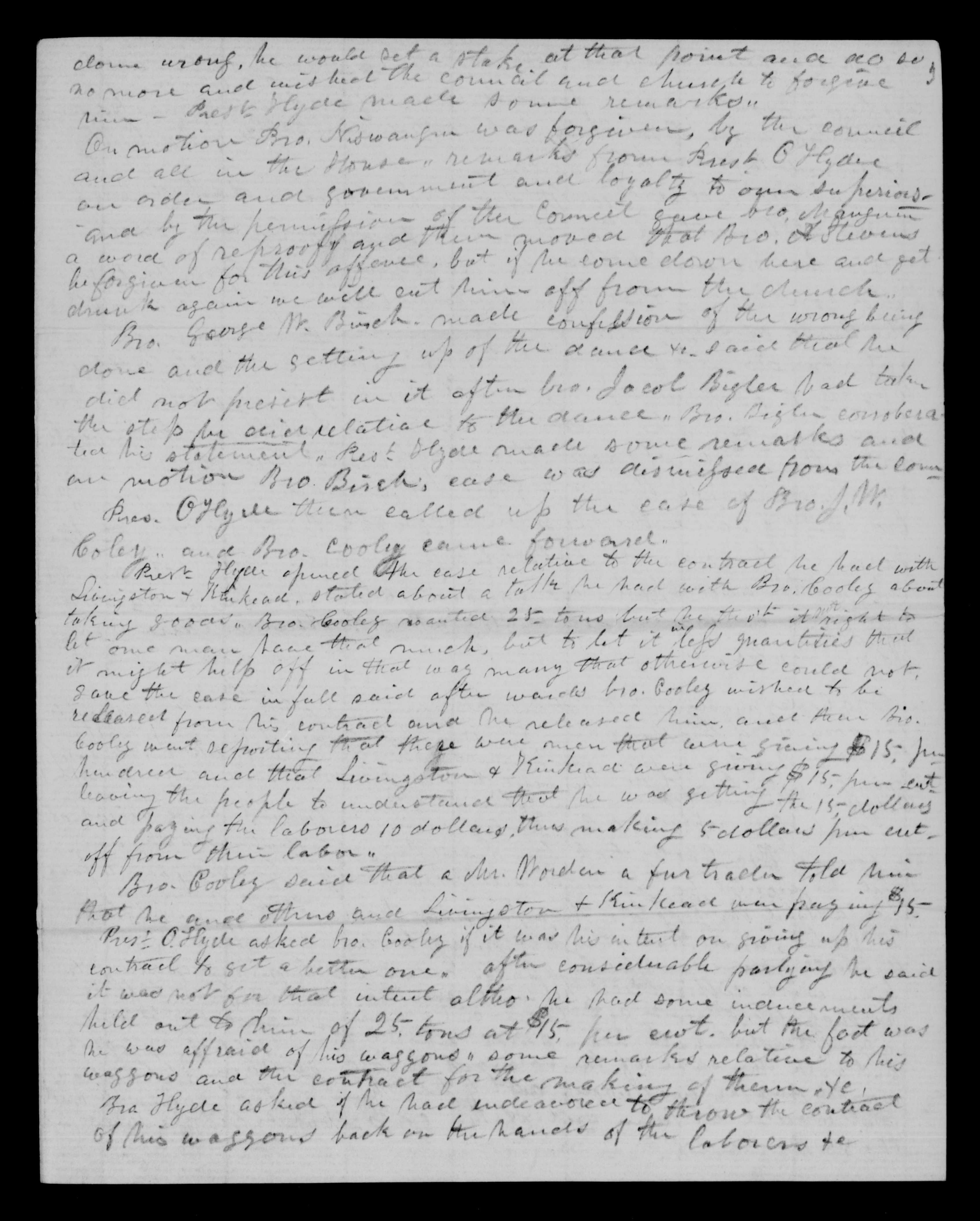 Livingston & Kinkead, state about a talk he had with Bro. Cooley about