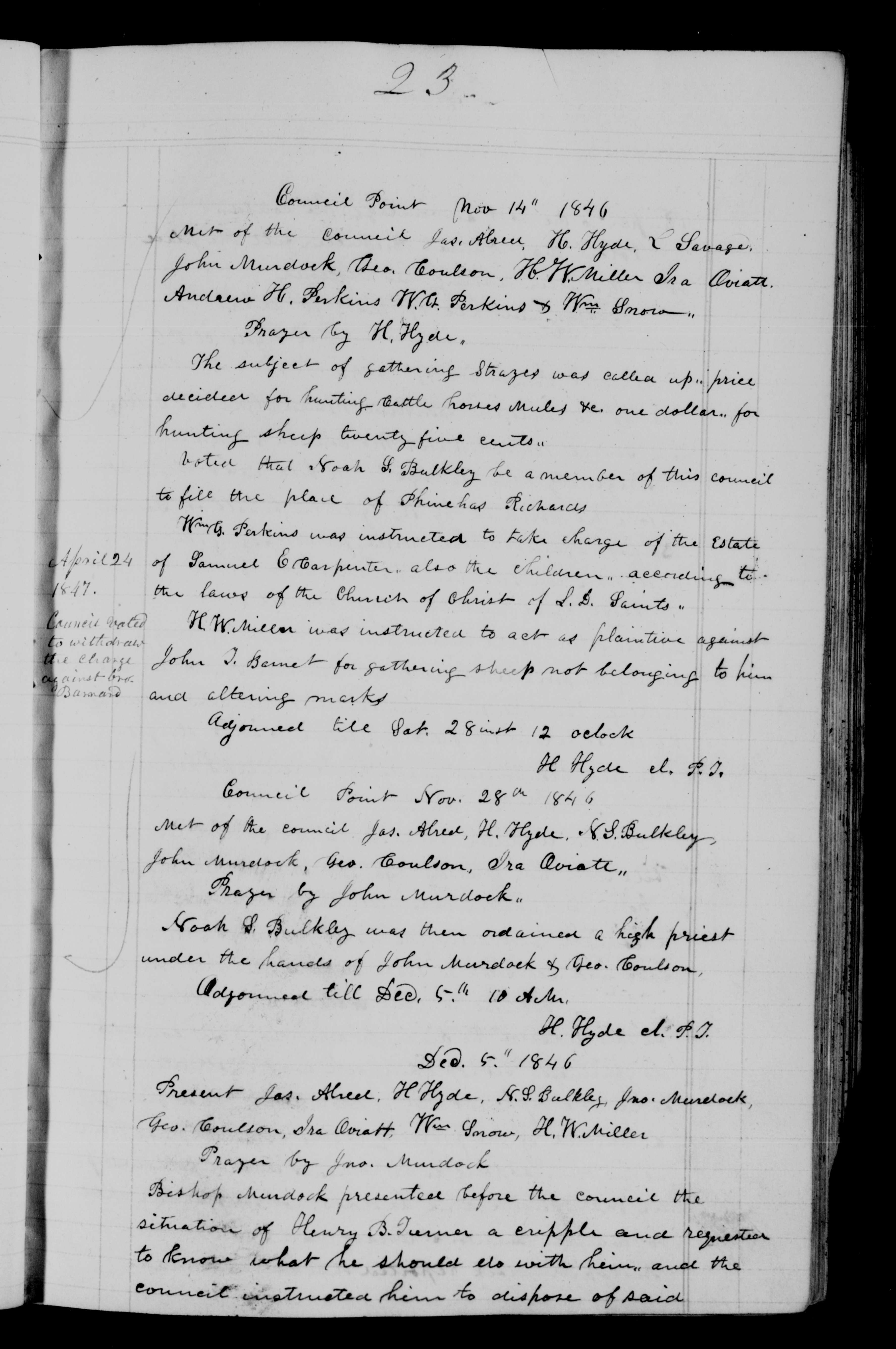 Noah L. Bulklly was then ordained a high priest