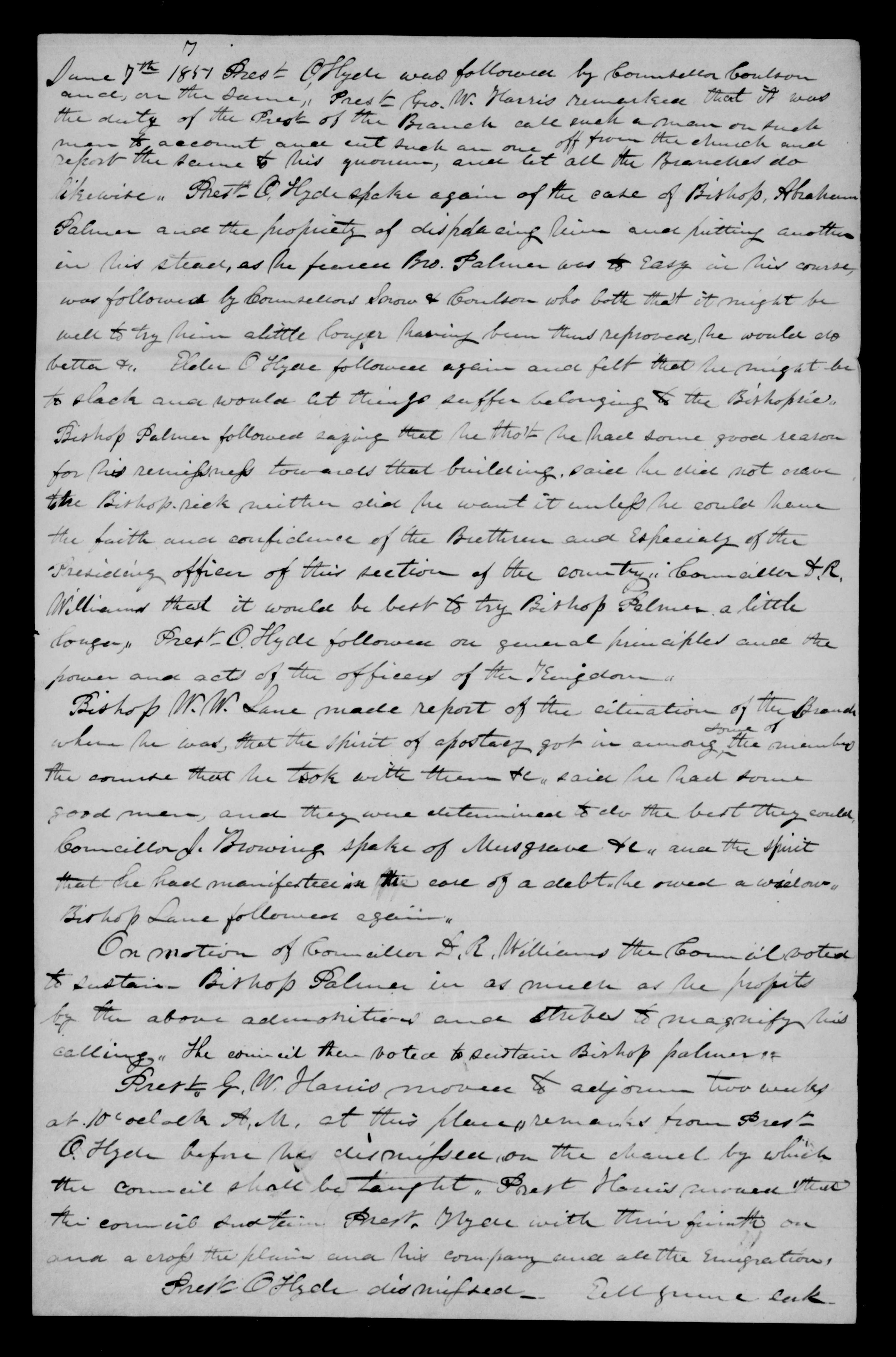 June 7th 1851 Prest O. Hyde was followed by Counsellor Coulson