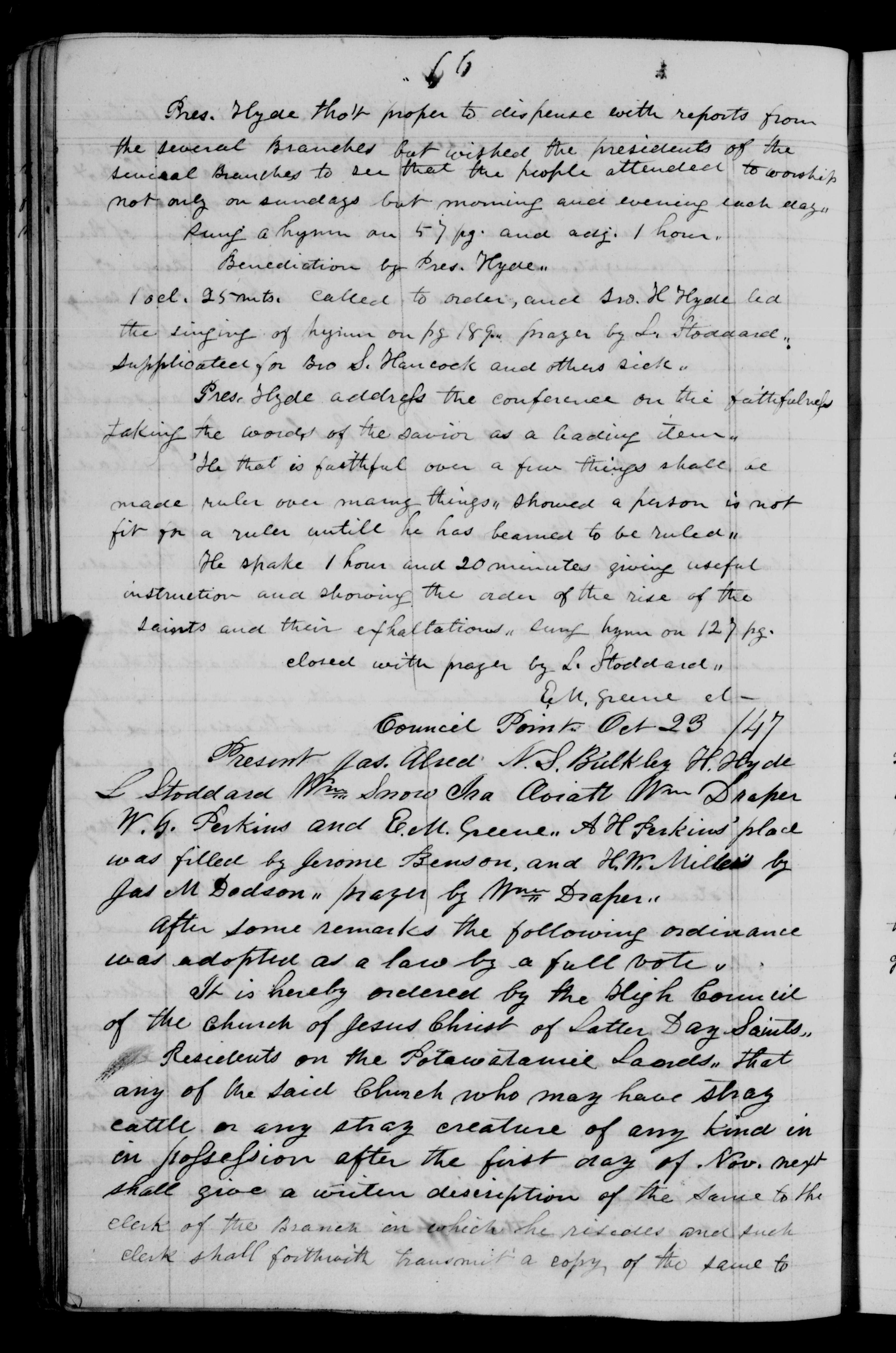 Benediction by Pres. Hyde