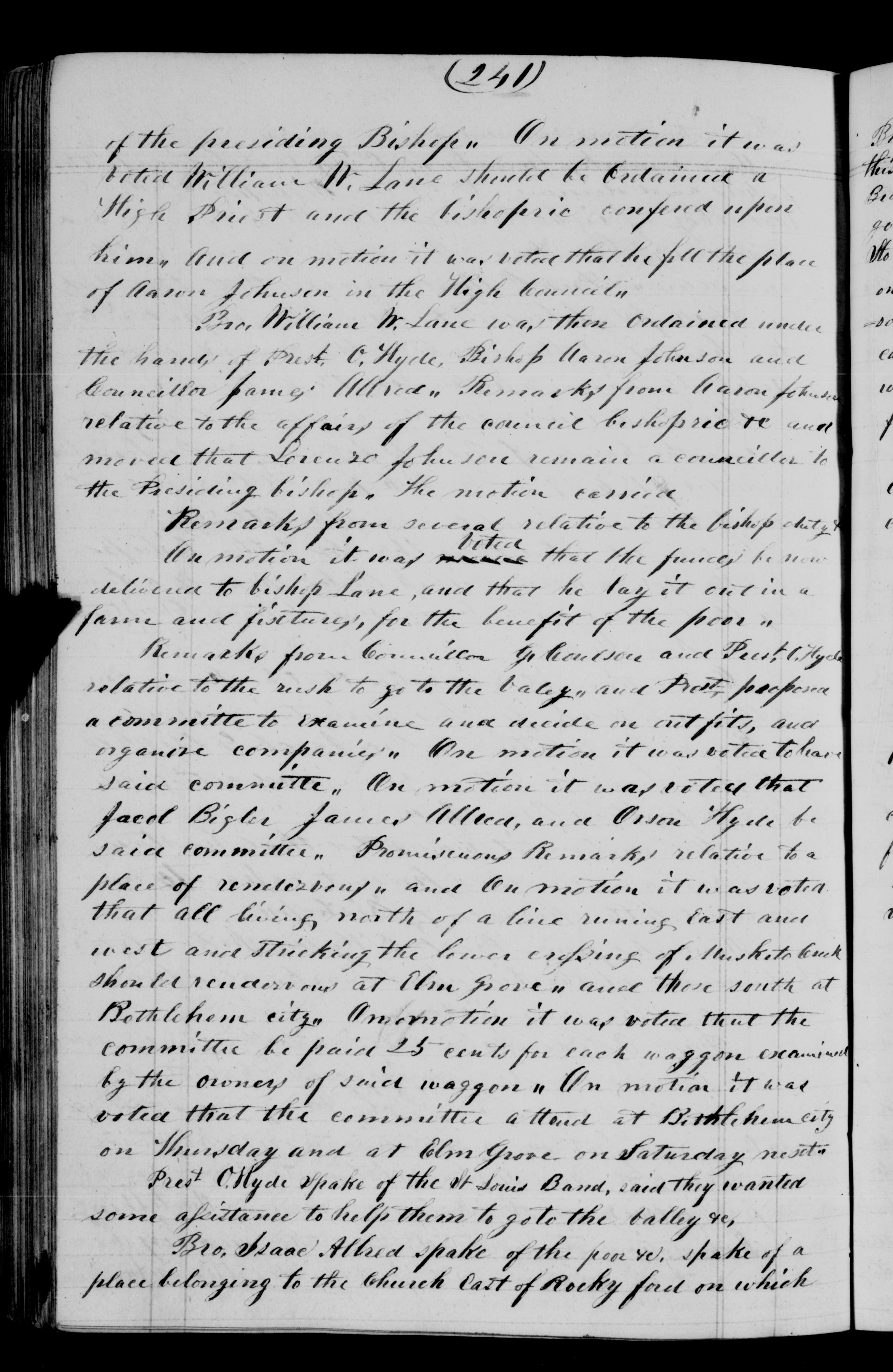 the hands of prest O. Hyde, Bishop Aaron Johnson and