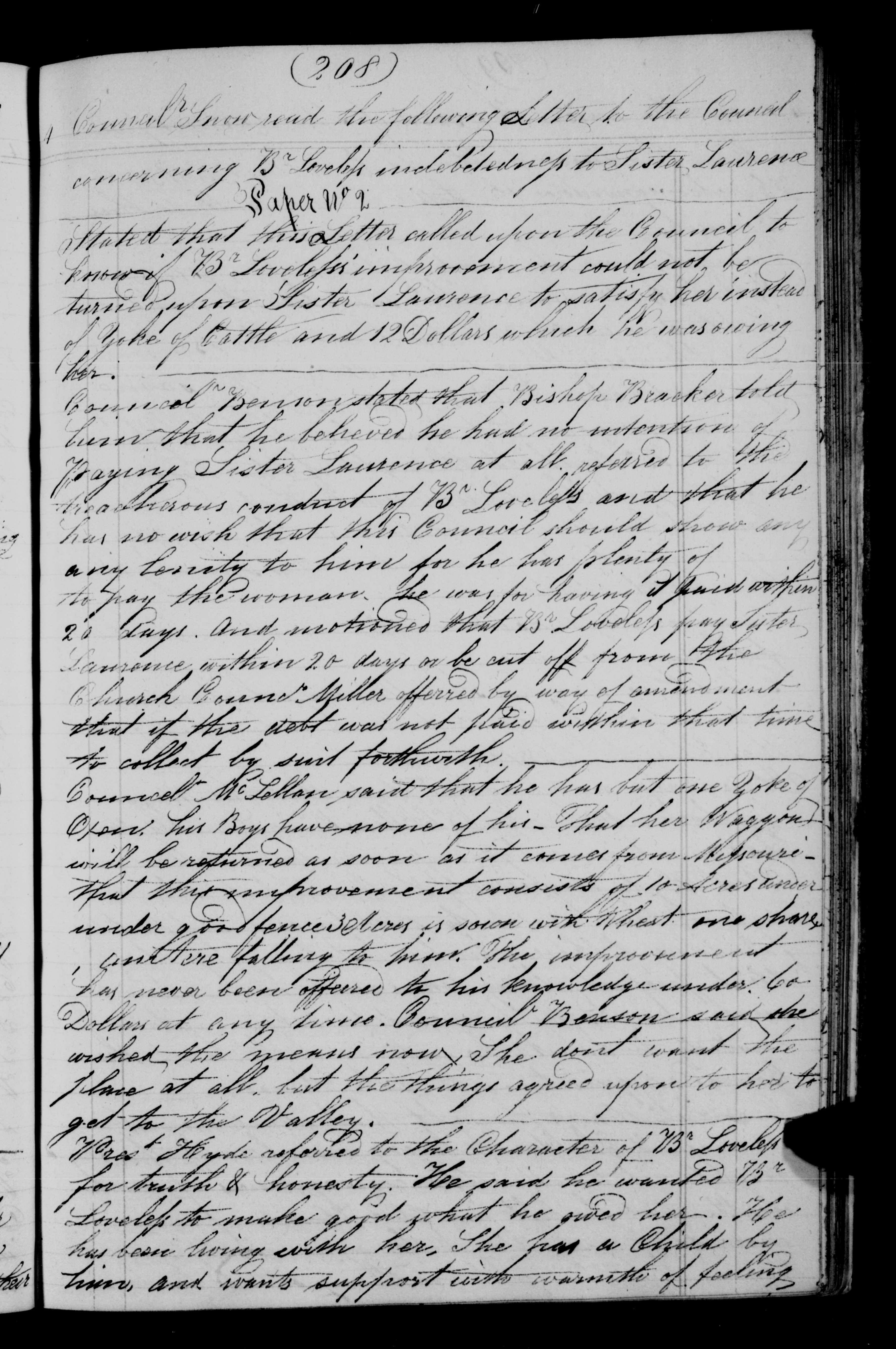 20 days. And motioned that Br Loveless pay Sister
