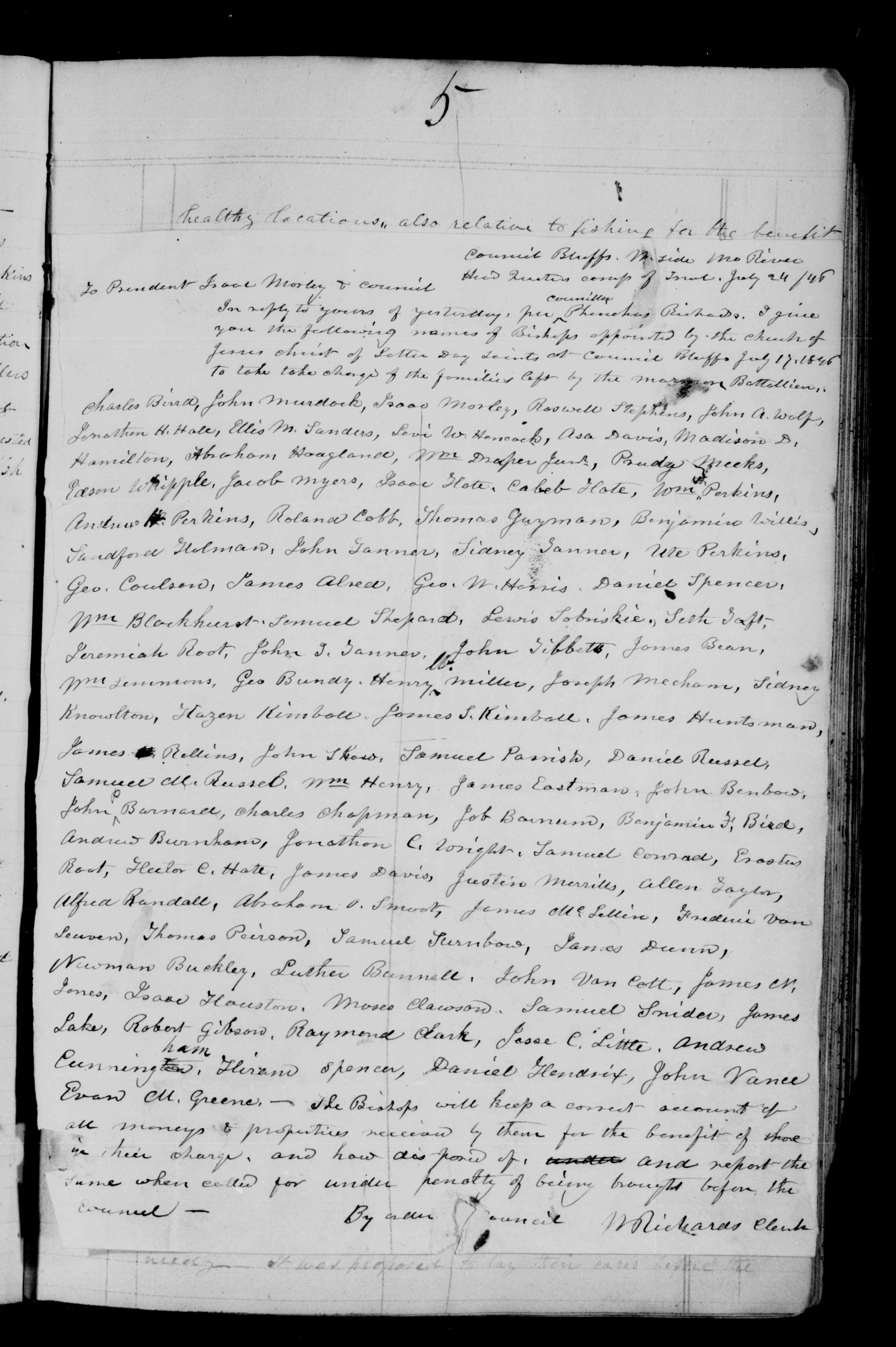 Council -- By order [of the] Council W Richards Clerk