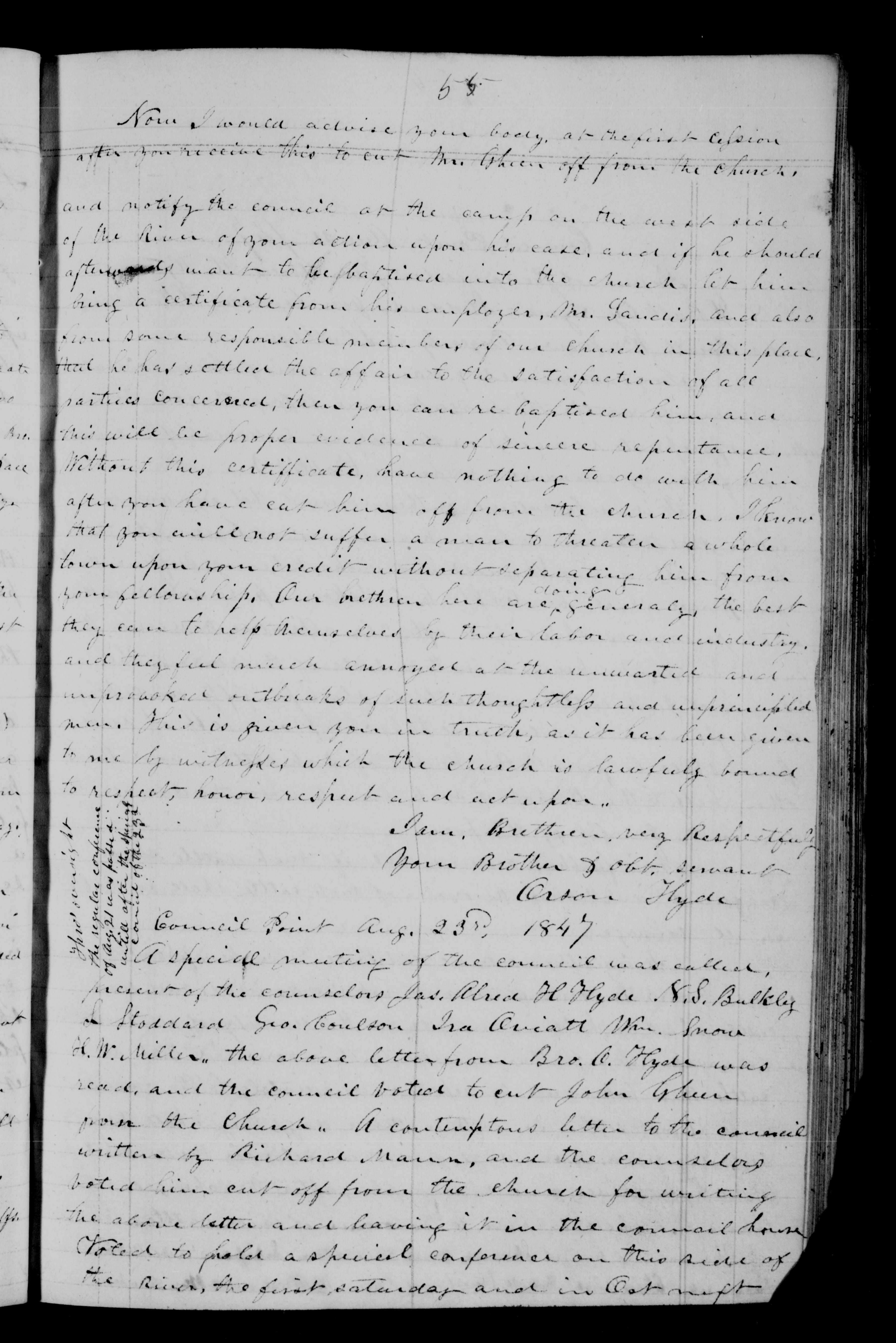 H. W. Miller,, the above letter from Bro O. Hyde was