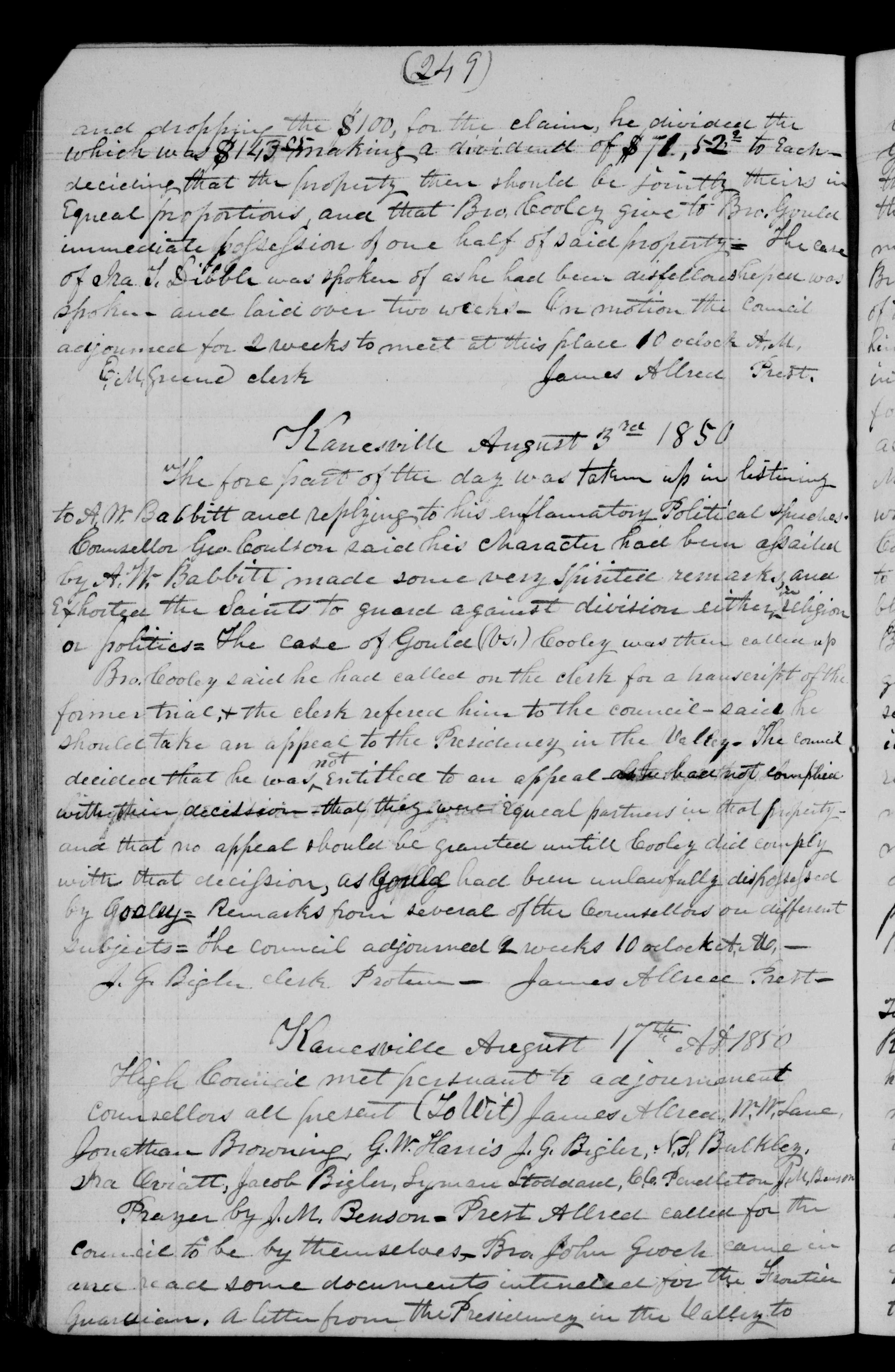 J.G. Bigler clerk Protem-- James Allred Prest-