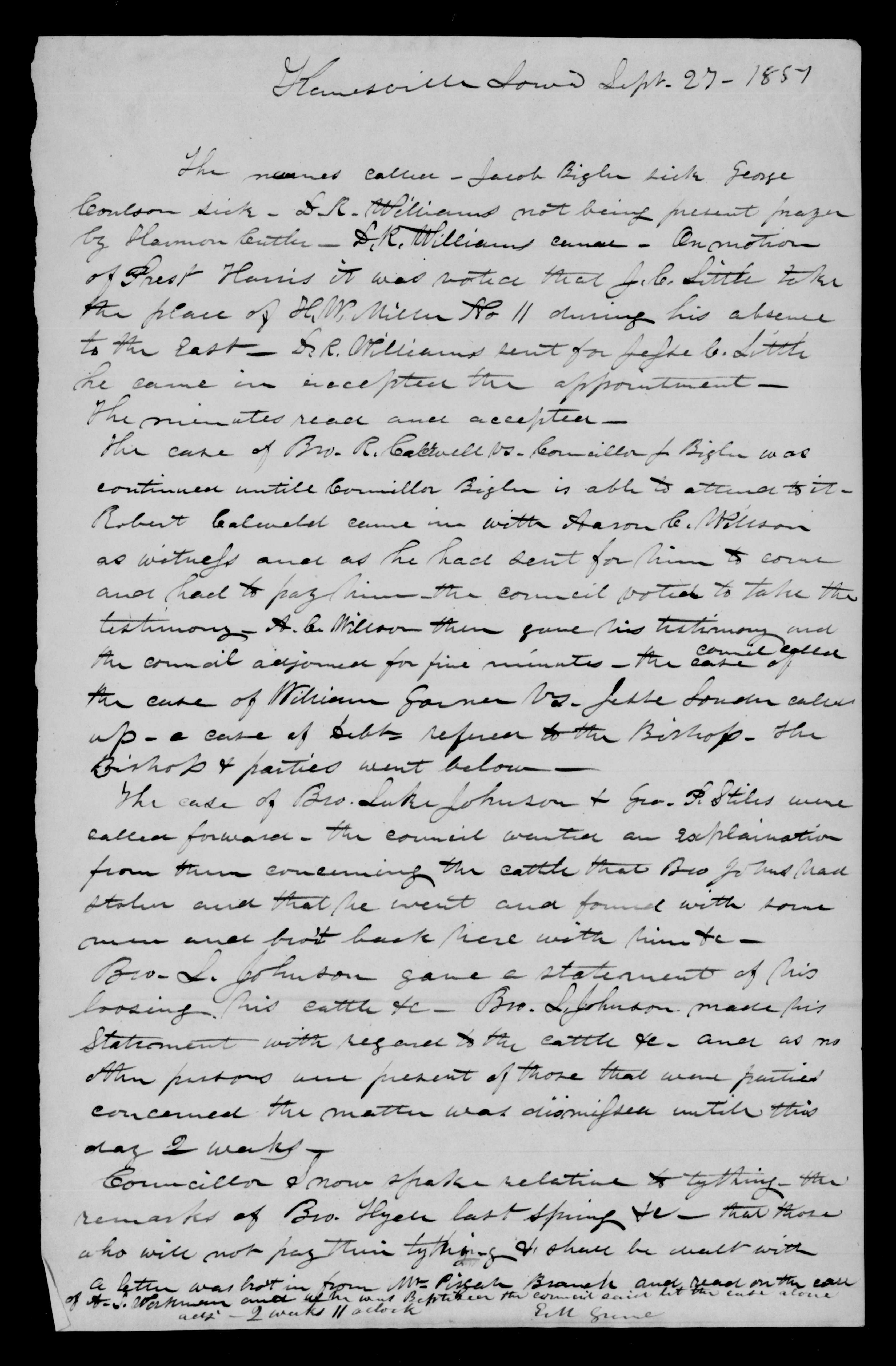 loosing he cattle &c. Bro. L. Johnson made his