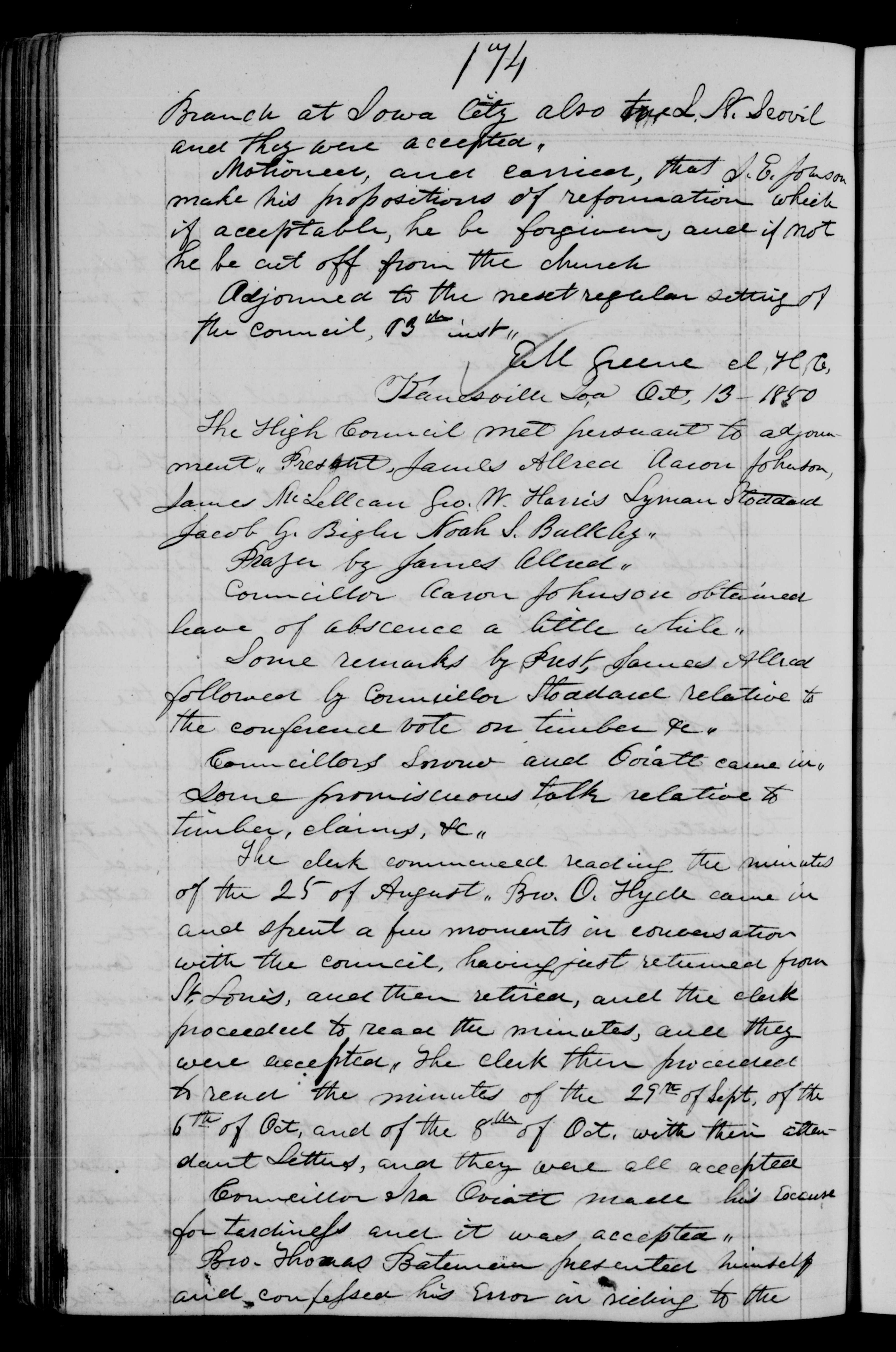 Kanesville Ioa Oct, 13 1850