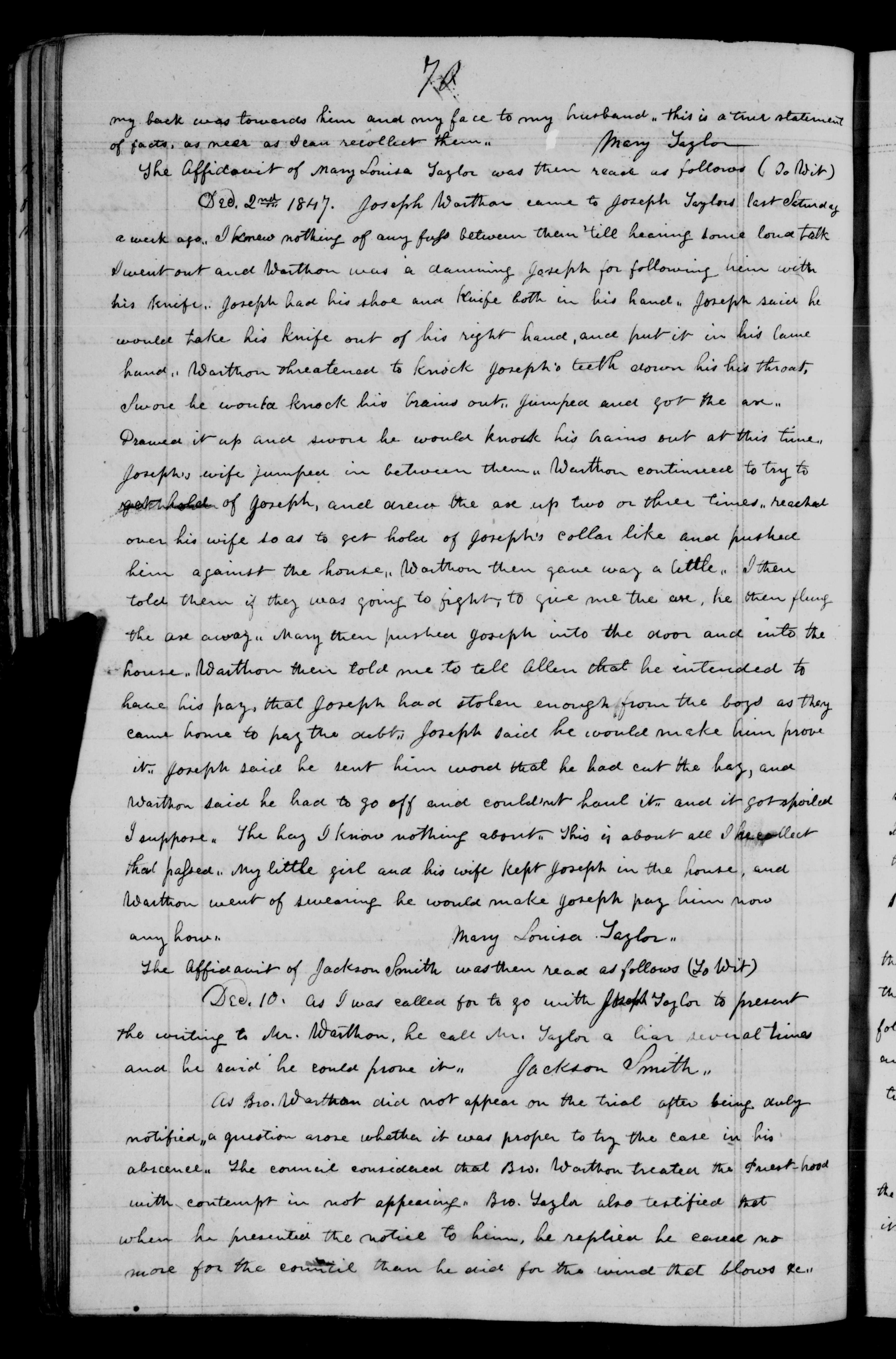 Dec. 2nd 1847. Joseph Warthon came to Joseph Taylors last Saturday