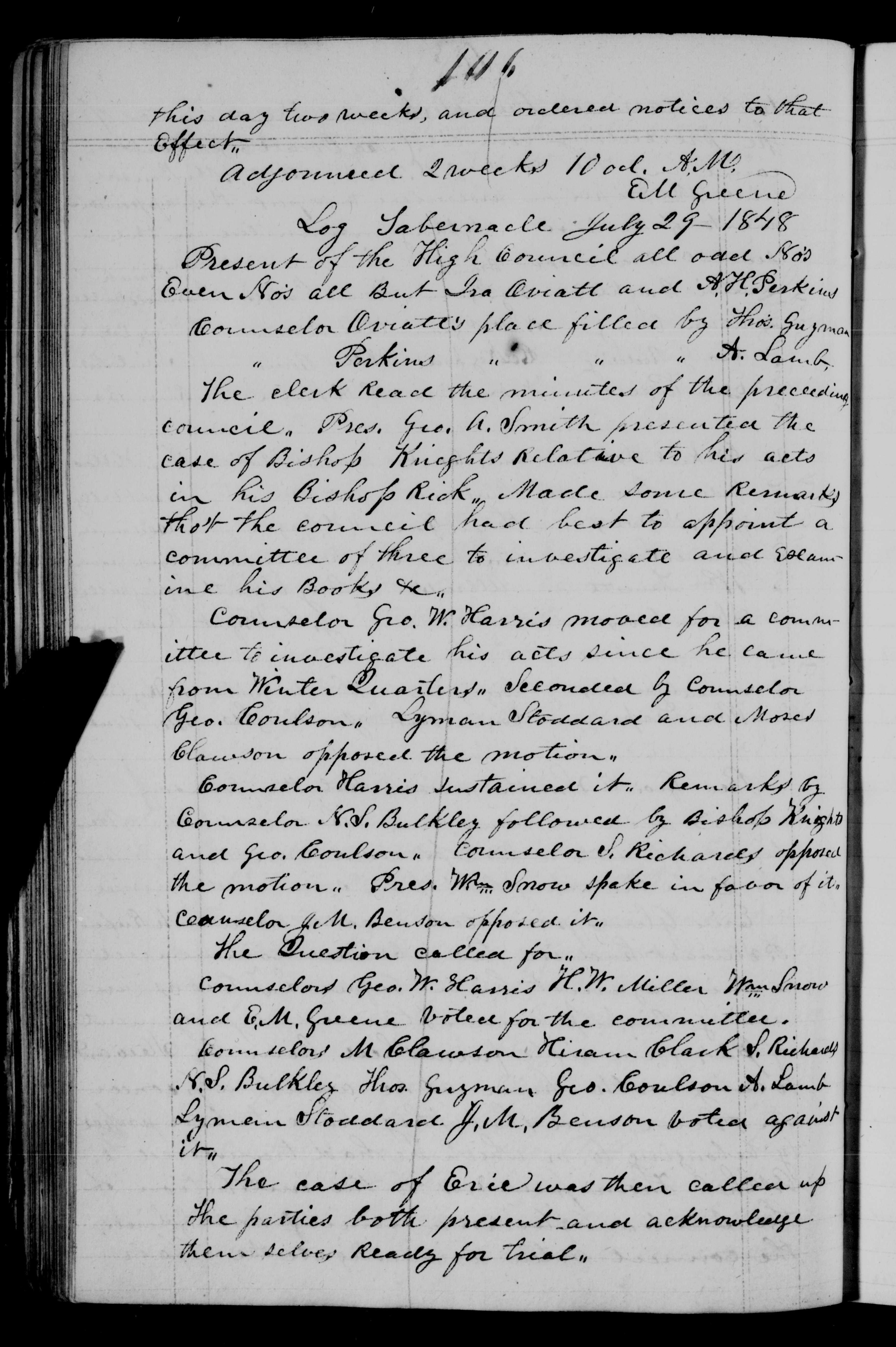 Counselors Geo. W. Harris H. W. Miller Wm Snow