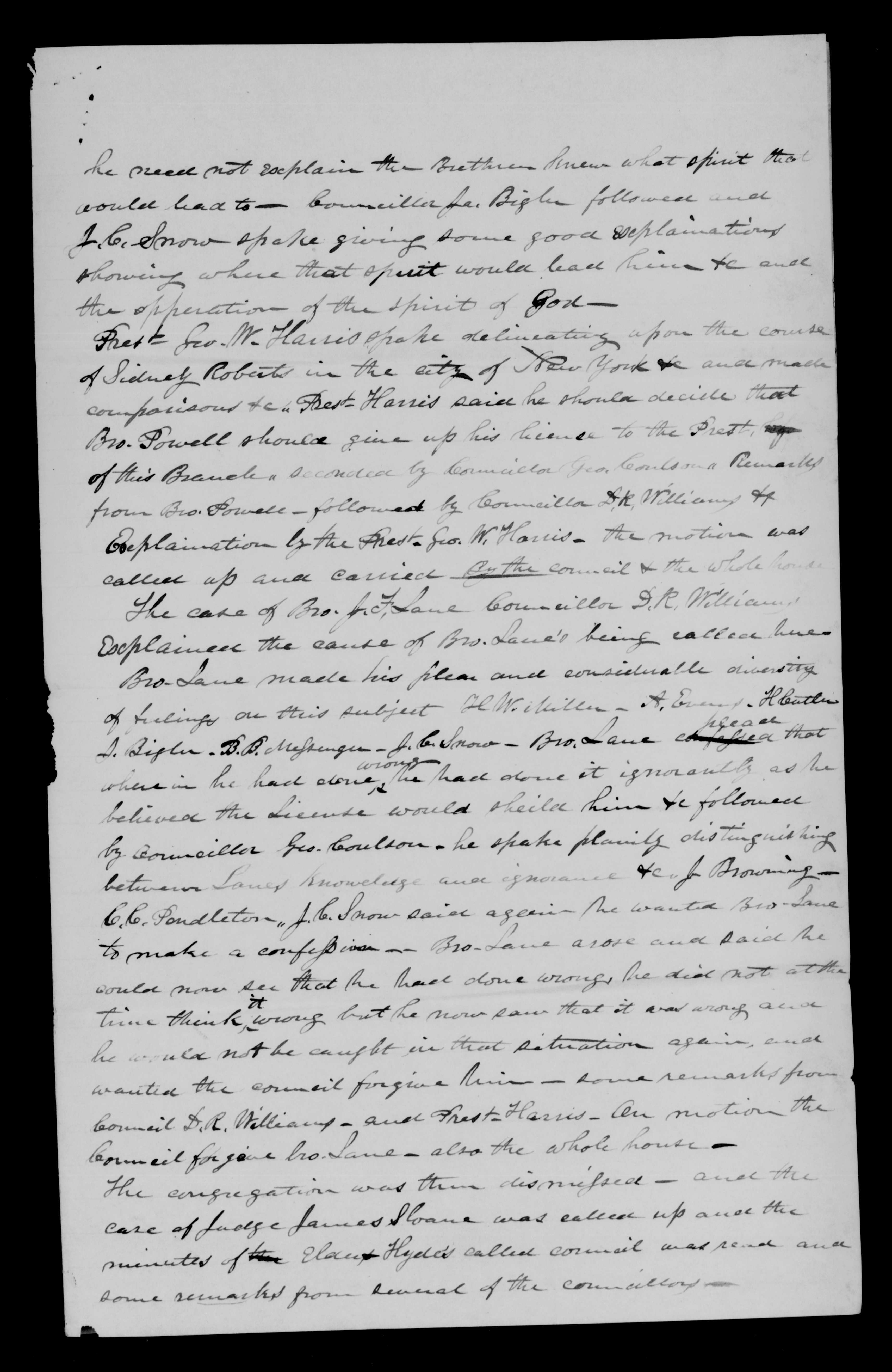 J. Bigler, B. B. Messenger- J. C. Snow- Bro. Lane confessed plead that